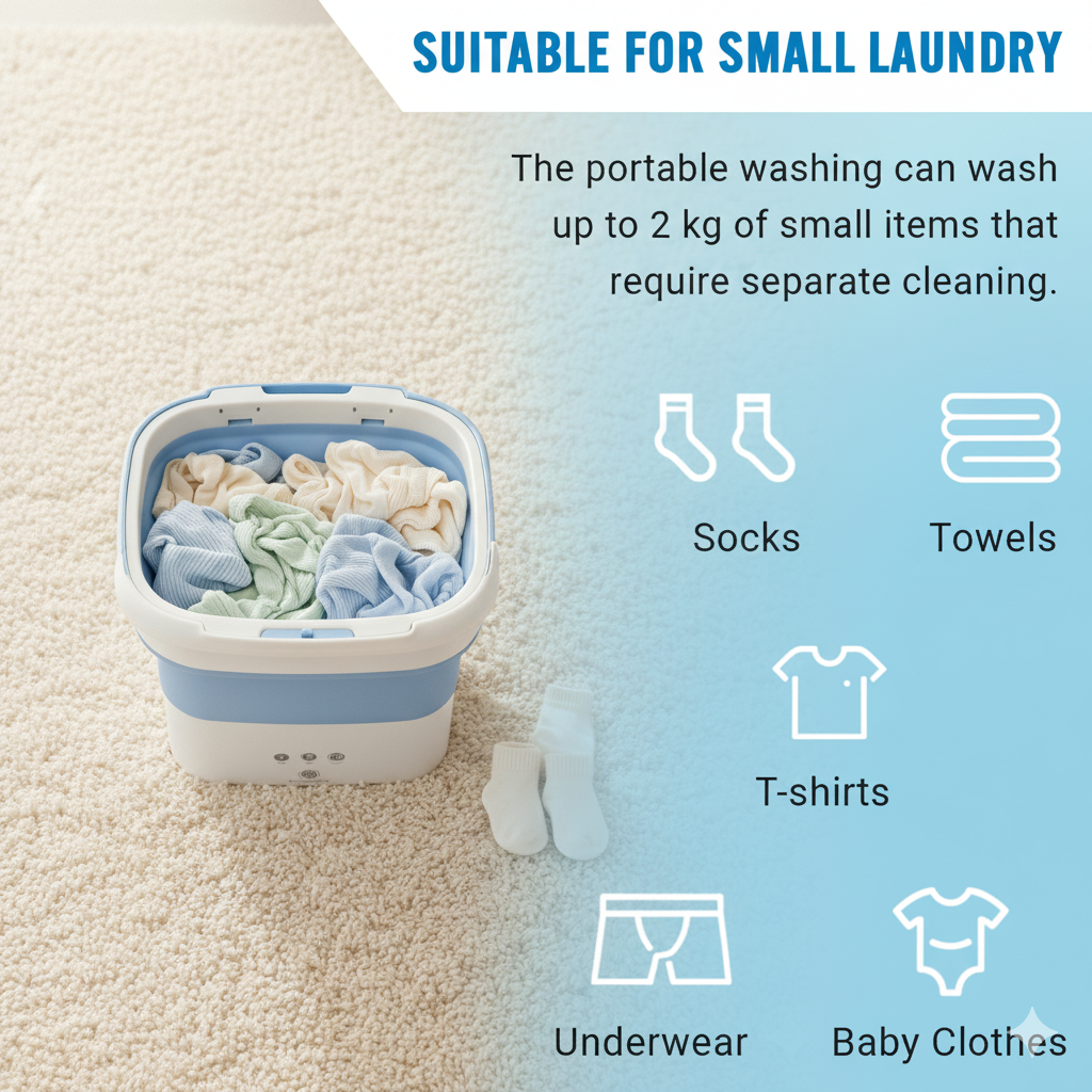 Tired of hand-washing socks, underwear, and baby clothes? Our Portable Folding Mini Washing Machine offers a convenient solution for cleaning small loads quickly and efficiently. Its compact design ensures it fits seamlessly into your living space.